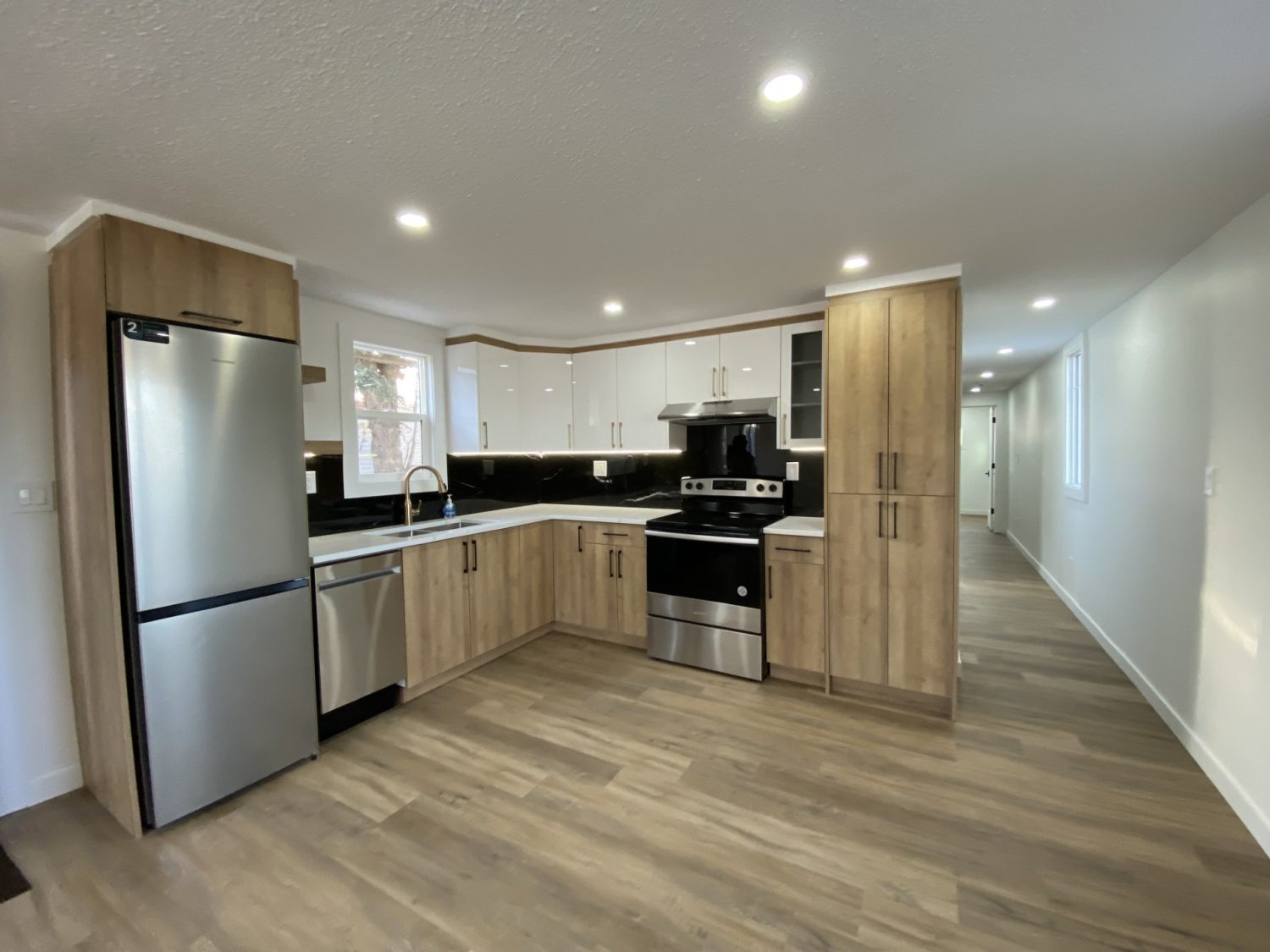 This fully renovated 2 bedroom/1.5 bath home is a MUST SEE! It has been renovated from the inside out with all new framing, insulation and drywall, new roof, shingles, siding and skirting, new wiring and plumbing, new A/C ready furnace, new lighting inside and out, fully updated kitchen with beautiful finishes, new stainless steel refrigerator, stove and dishwasher, updated bathroom with high end finishes, new high end vinyl plank flooring, new windows and door and all new hardware. The living room has an electric fireplace with room to hang a TV plus decorative shelving on both sides. It has an open concept floor plan great for entertaining and get togethers. The exterior features an insulated and drywalled garage with electricity, a new back deck and side by side driveway. The home backs onto a green belt and is located in a Cul de sac. Call us today to schedule your personal tour of this home and community. We look forward to hearing from you! Contact the sales office for details. Price is subject to change without notice.